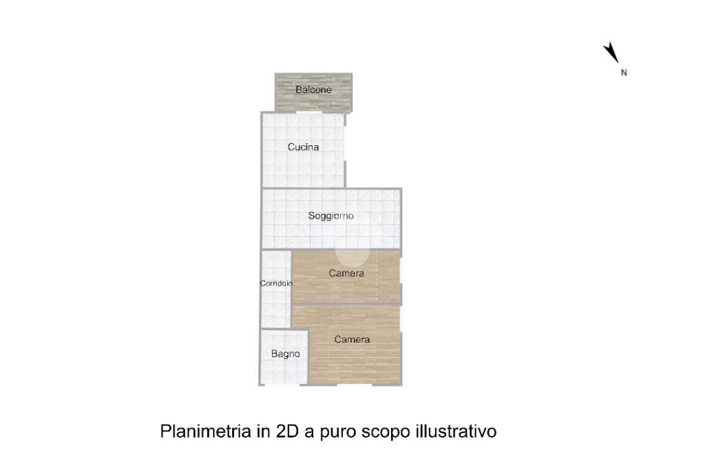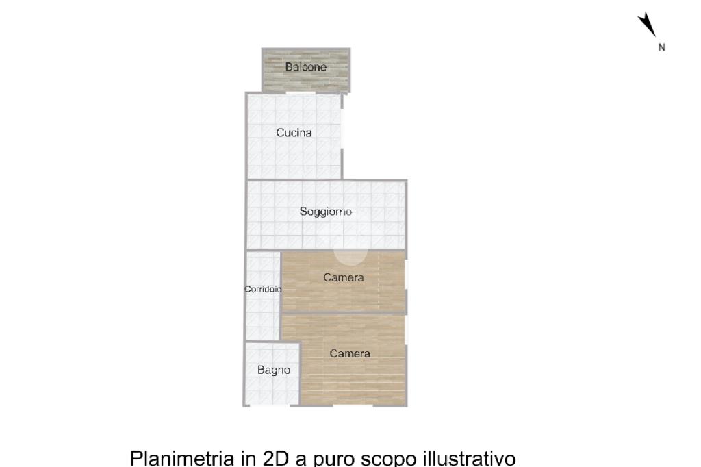 Un comodo corridoio ci conduce nella zona notte, composta da due camere da letto – entrambe con balcone – e da un bagno finestrato con doccia, rifinito con materiali di qualità.